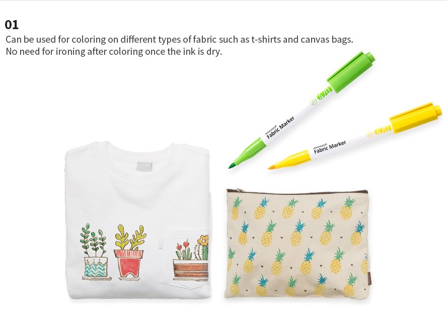 Para dibujar y colorear cobre textiles, como camisetas, bolsas ecológicas, zapatillas, delantales, gorros etc.